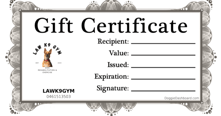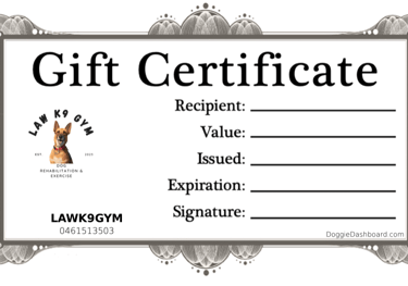 Looking for the perfect gift for any occasion? Look no further! We offer gift certificates that can be customised with any amount you choose. Whether it's a birthday, anniversary, or just a special treat, our gift certificates are the ideal way to show someone you love how much you care. Give them the gift of health and happiness with private dog training lessons or the healing benefits of hydrotherapy. Don’t wait – surprise your loved ones today with a gift that will truly make a difference in their furry friend’s life.