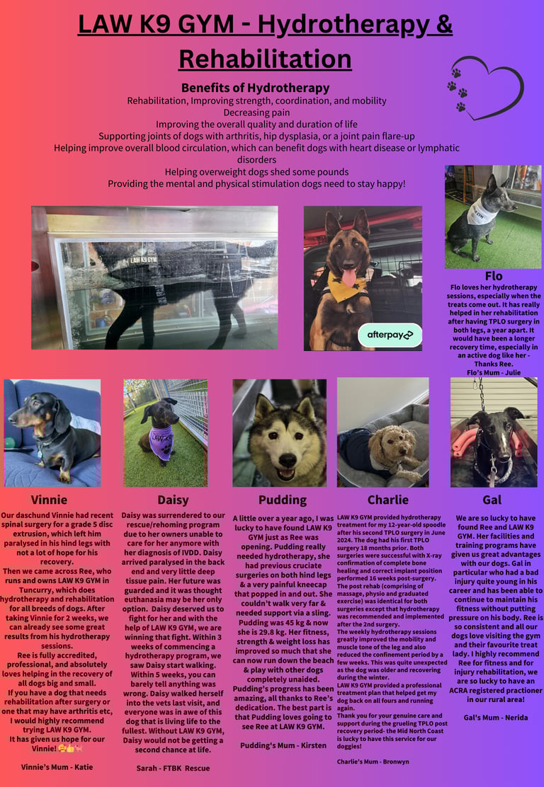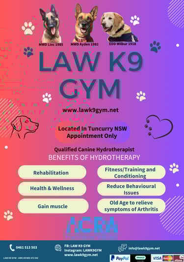 Packages Available - Following the Initial Consult, LAW K9 GYM has discounted tailored packages available for follow up hydrotherapy sessions.